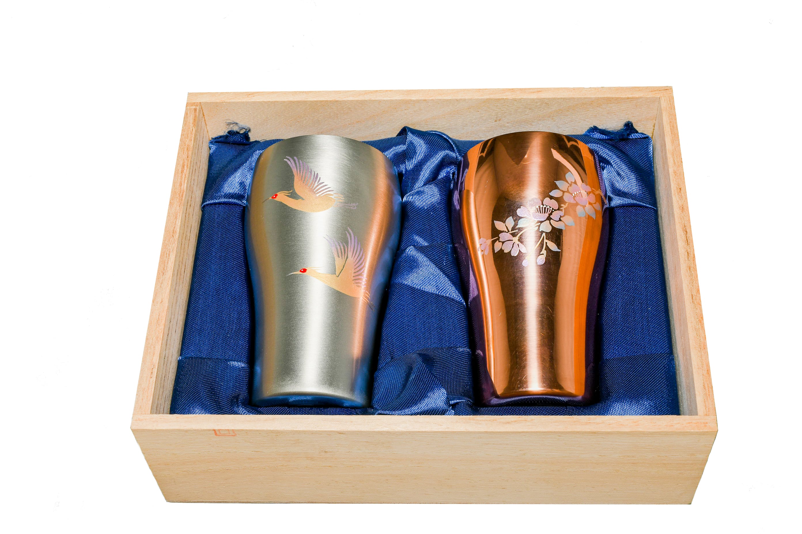 純銅タンブラー200cc 2個セット(蒔絵・トキ×1、ショウブ×1) 桐箱入り