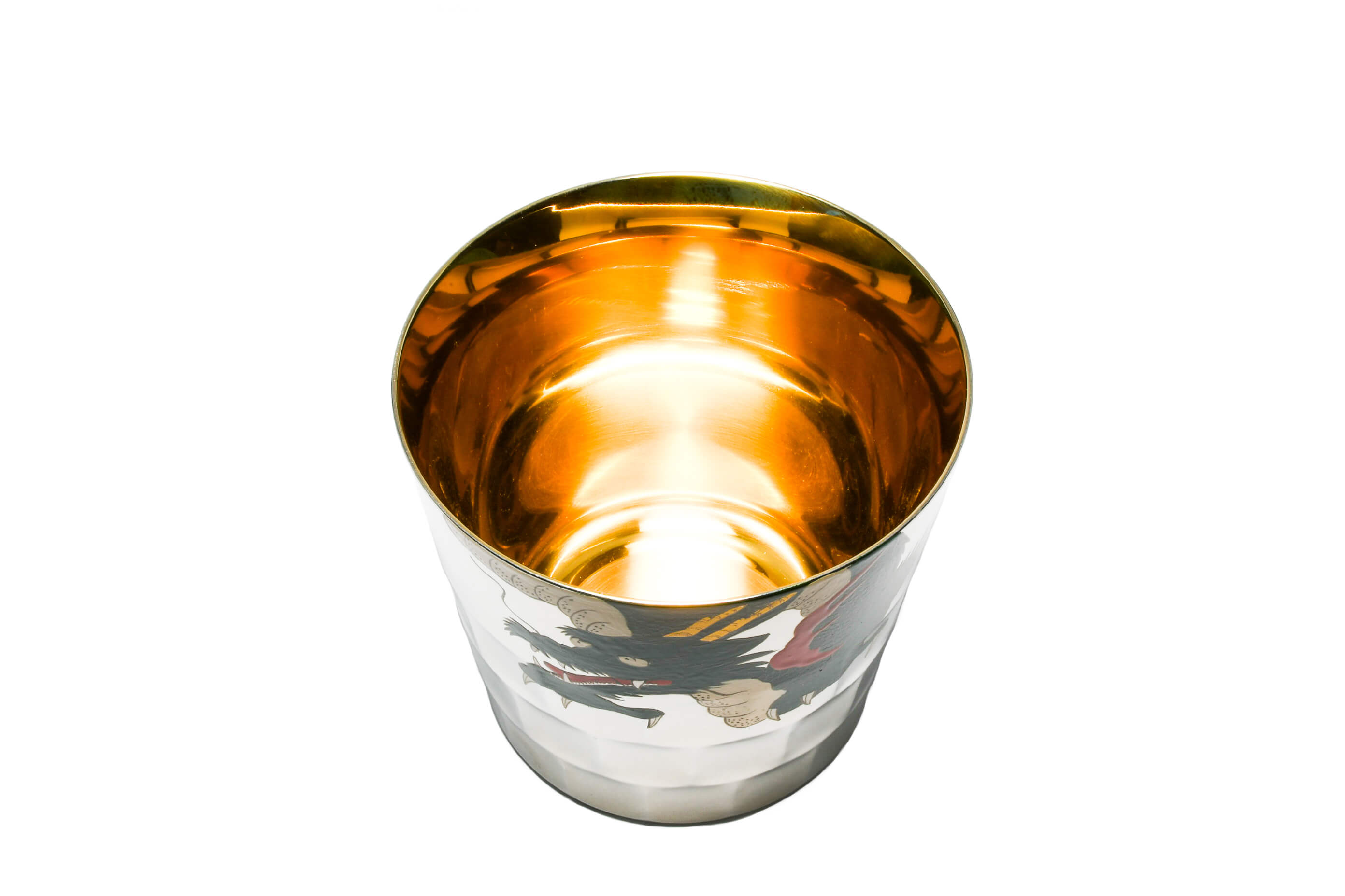 内面は、24金メッキを施してあるので金属臭が少なく、お酒本来の味わいを堪能していただけます。ロックや水割りをお楽しみいただけます。